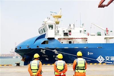 日前,我國(guó)自主研發(fā)的智能航行300TEU集裝箱商船“智飛”號(hào)在山東港口青島港首航。
