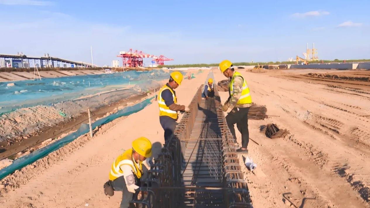 ????濱海港區(qū)主港區(qū)北區(qū)通用碼頭三期工程位于濱海港區(qū)規(guī)劃主港池北側,新建一個以裝卸散裝為主的公共碼頭,總投資約8億元,共布置10萬噸及通用泊位1個,泊位總長310m,設計通過能力為415萬噸/年,可滿足散貨每年270萬噸、件雜貨每年120萬噸的吞吐量要求。項目于2022年12月開工建設,計劃于今年12月完工。