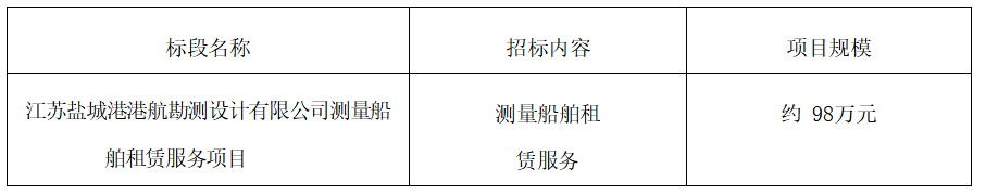 ⑴項目名稱:江蘇鹽城港港航勘測設計有限公司測量船舶租賃服務項目
