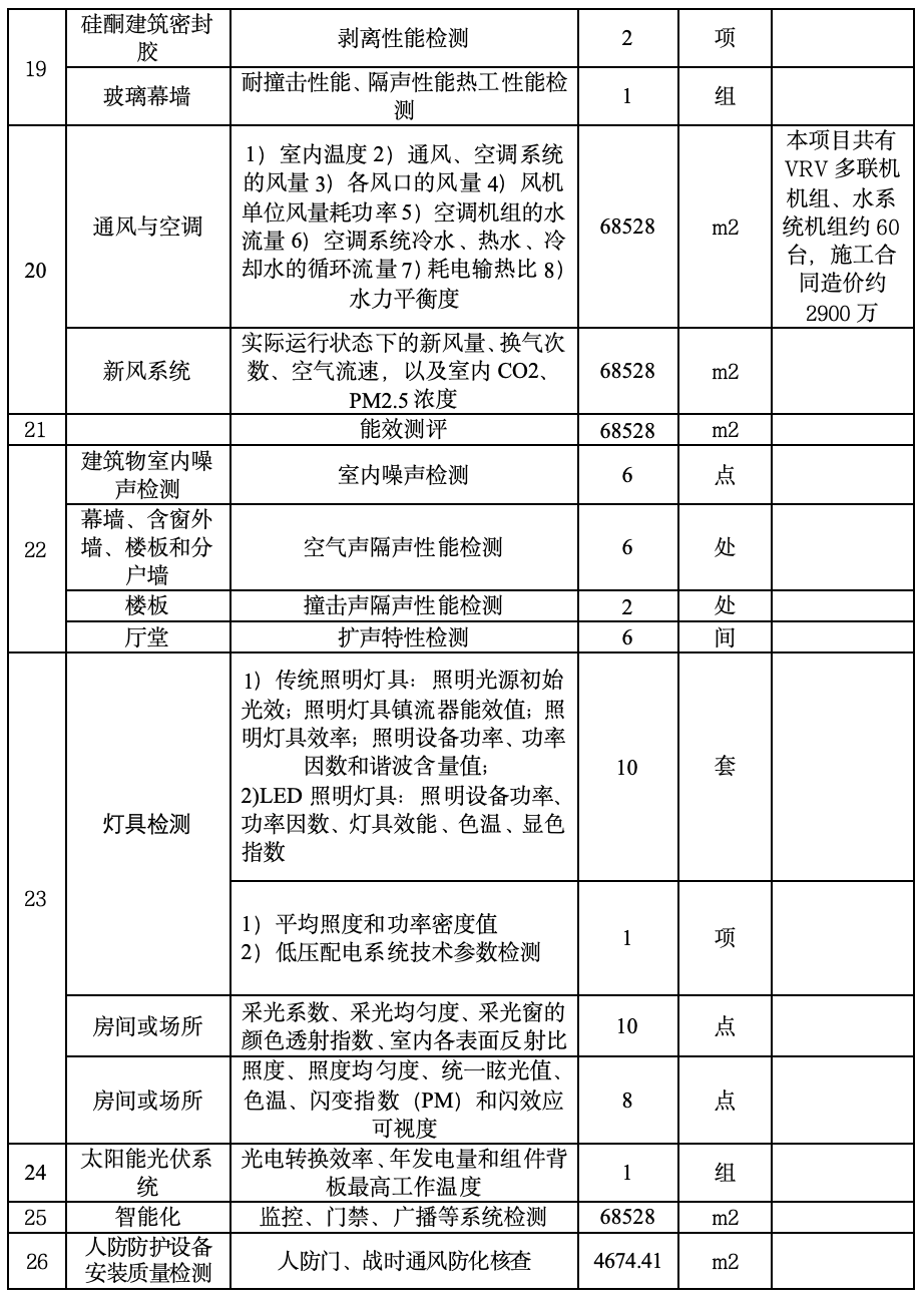 (9)檢測(cè)清單:本次招標(biāo)檢測(cè)清單明細(xì)如下: