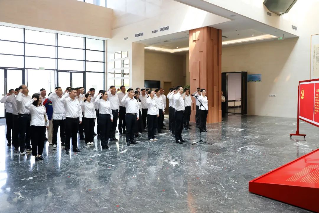 “我志愿加入中國共產(chǎn)黨,擁護(hù)黨的綱領(lǐng)...” 在莊嚴(yán)的黨旗下,全體黨員重溫入黨誓詞,鏗鏘誓言在紀(jì)念館內(nèi)久久回蕩。這誓言不僅是對入黨初心的回溯,更是對當(dāng)下及未來為黨和人民事業(yè)拼搏奮斗的莊重承諾。