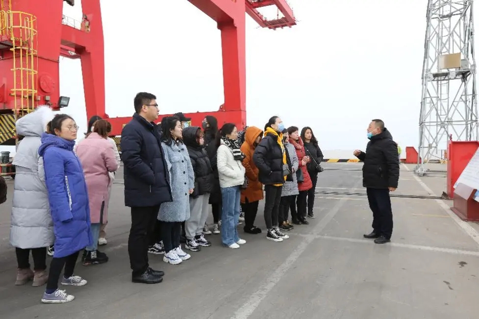 濱海港區(qū)單位女職工在生產(chǎn)經(jīng)營(yíng)部工作人員的帶領(lǐng)下,學(xué)習(xí)門(mén)機(jī)進(jìn)行裝卸作業(yè),了解碼頭從船舶靠岸的前期準(zhǔn)備到靠泊后的裝卸作業(yè)的全部流程。