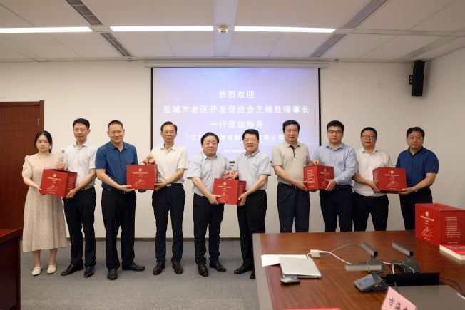 6月28日下午,市老區開發促進會理事長王錦勝率隊來集團考察指導,向集團贈送《鹽城市革命老區發展史》系列圖書。集團黨委書記、董事長、總經理周正雄參加并介紹了鹽城港成立一年來的整合、磨合和融合發展情況。集團黨委委員、董事、副總經理陳正華等參加。