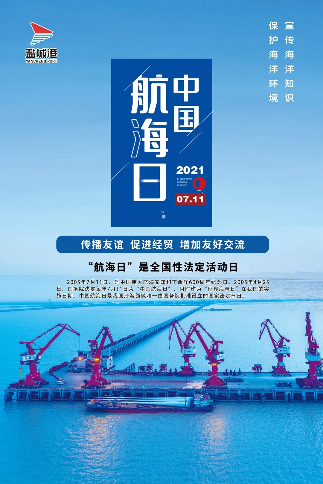 六百多年前,鄭和的船隊(duì)沿著海上絲綢之路,創(chuàng)下七下西洋的壯舉,開拓了全新的航海事業(yè)。數(shù)百年后,又有一批批航海人,他們披荊斬棘、乘風(fēng)破浪,擔(dān)負(fù)使命、興海報(bào)國(guó),努力寫就一段段新的航海傳奇。7月11日,是第17個(gè)中國(guó)航海日,今天,也是每一個(gè)鹽城港人的節(jié)日,作為新時(shí)代、新航程的追夢(mèng)人,他們正以涓滴之力匯聚成昂揚(yáng)向上的拼搏勁頭。
