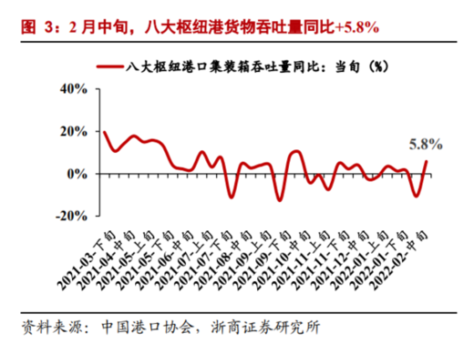 2月中旬八大樞紐港貨物吞吐量同比增5.8%