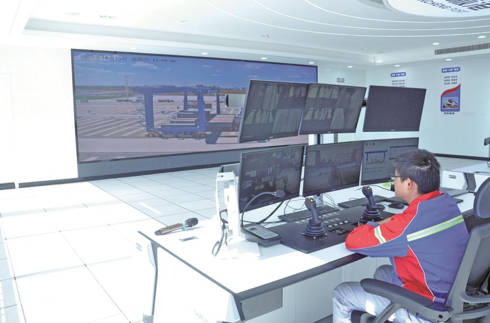 “傳統(tǒng)人工操作,需要單人單機(jī)長(zhǎng)期低頭作業(yè)、每天上下攀爬20米的設(shè)備,一干就是12個(gè)小時(shí),平常還好,特別是遇到高溫及刮風(fēng)下雨等惡劣天氣,那滋味兒可真不好受。”自動(dòng)化軌道吊司機(jī)花輝介紹,現(xiàn)在實(shí)現(xiàn)了“一對(duì)多”的設(shè)備遠(yuǎn)程監(jiān)管,徹底實(shí)現(xiàn)了人機(jī)分離,且操作難度降低,工作人員只需通過(guò)電腦屏幕進(jìn)行遠(yuǎn)程監(jiān)控即可,初始階段1人可以監(jiān)管3臺(tái)軌道吊。隨著堆場(chǎng)的深入運(yùn)營(yíng),未來(lái)可實(shí)現(xiàn)1人遠(yuǎn)控6臺(tái)軌道吊同時(shí)作業(yè),降低了人力成本,極大改善作業(yè)環(huán)境,生產(chǎn)安全也得到保證。