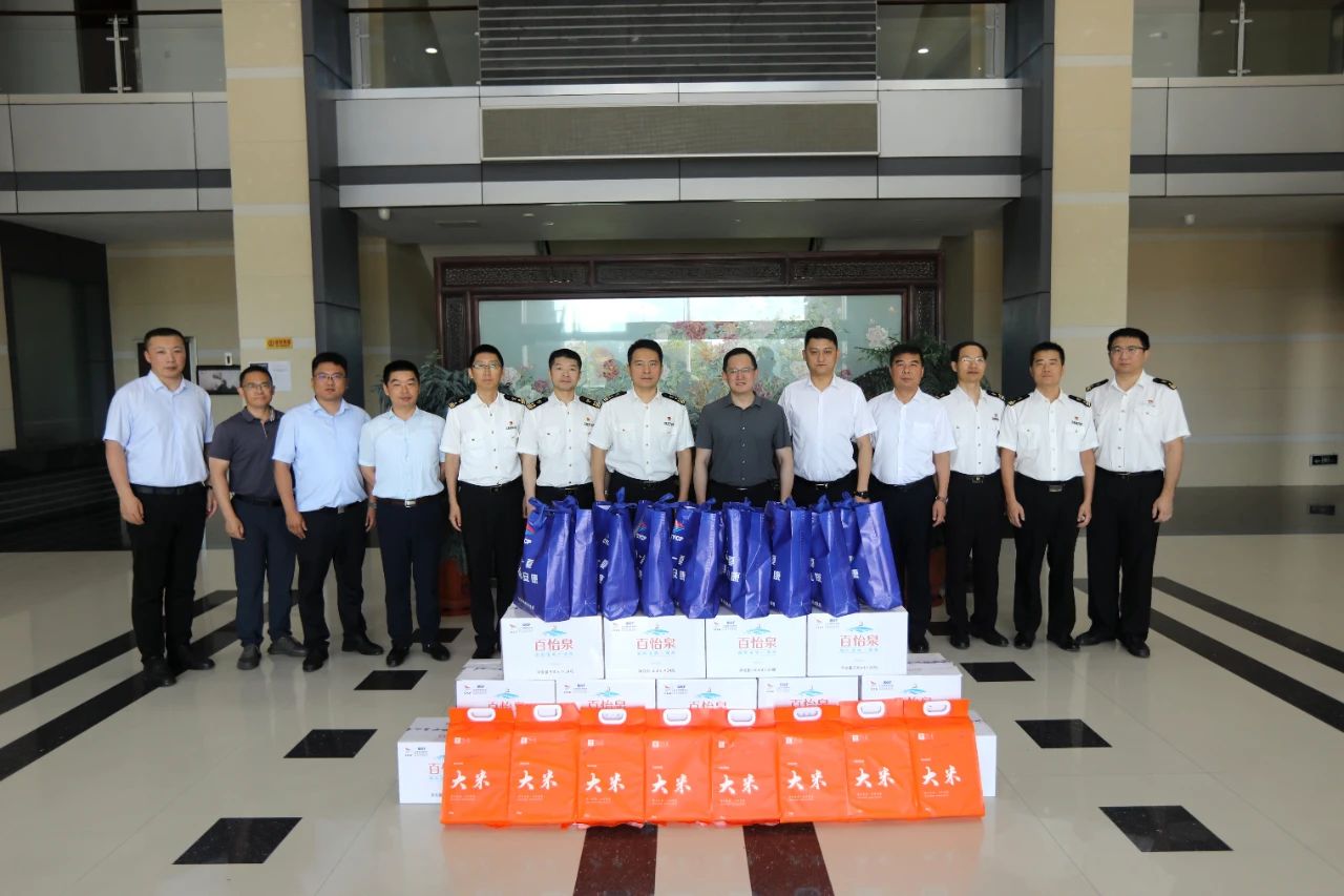 近日,受集團黨委、董事會委托,集團總經理袁欣率隊前往大豐港區邊檢站和通用碼頭,為堅守在高溫下的職工送去關懷與清涼,切實保障高溫環境下一線職工的勞動安全與身體健康。