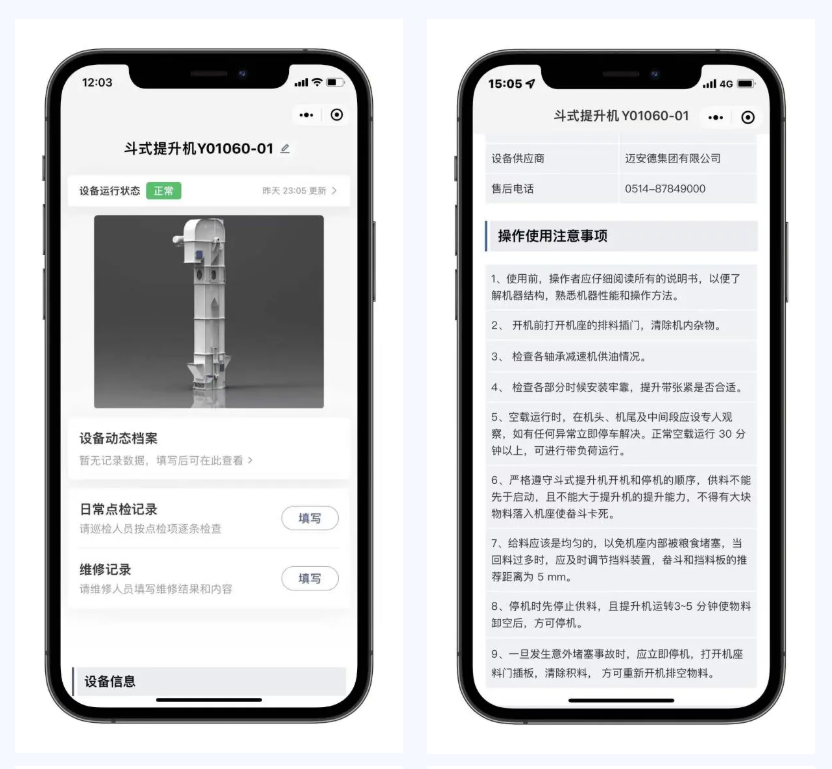 糧食倉儲公司通過采用二維碼設備巡查模式,實現了設備運轉實時監控,有效消除了氣墊傳輸機和斗式提升機等作業系統關鍵節點的風險隱患。