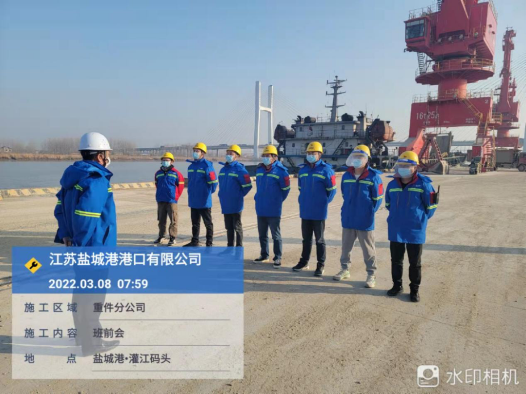 港口公司通用碼頭分公司充分發揮碼頭專業優勢,不斷優化人員結構,定人適崗,改進工作流程、提高工作效率并做好疫情防控和安全事項。從每天的早晨會做起,杜絕流于形式的班前會,做到五個一:“每日一點名”、“每日一問”、“每日一總結”、“每日一次傳達上級精神”、“每日一次安全防疫宣講”,真正為碼頭安全管理工作奠定基礎,為鹽城港高質量發展注入不竭動力。