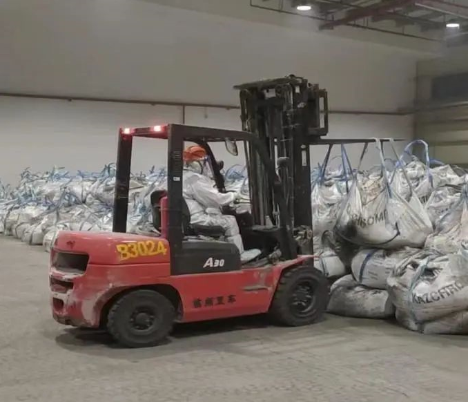 (叉車駕駛員在保稅區進行噸袋裝卸)