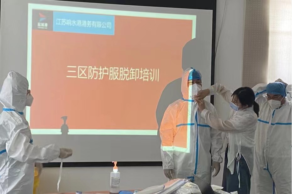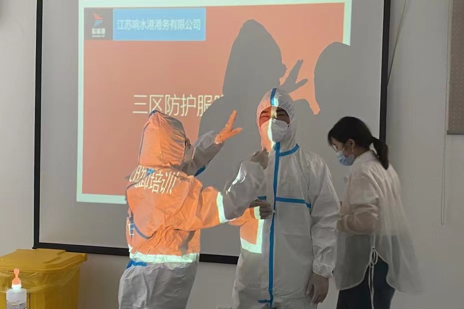 為堅決打好新型冠狀病毒疫情防控阻擊戰,全面提高應對疫情的響應能力,熟悉應急處置具體流程,從嚴抓好疫情防控工作,近日,響水港區港務公司特邀響水縣港城醫院專職醫護人員,對港區作業人員進行疫情防控相關的三區防護服穿脫消殺培訓。