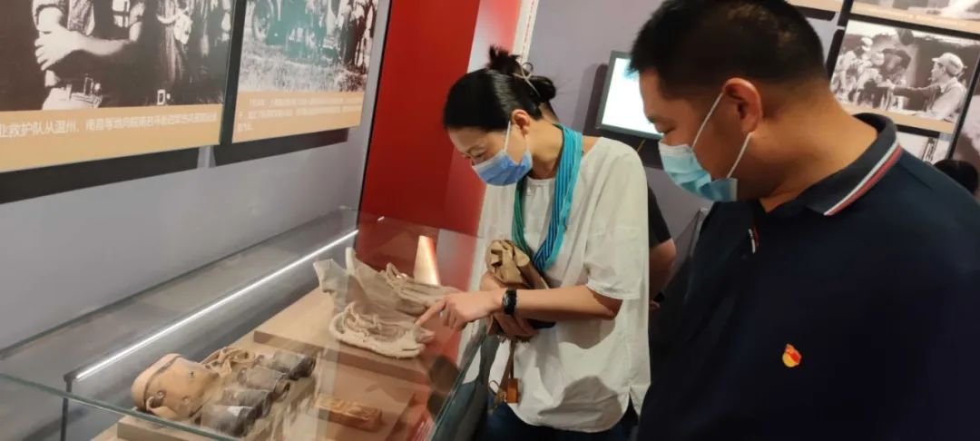 活動中,大家沿著引導標語,逐一走訪各個館區(qū),重溫新四軍一路走來的崢嶸歲月。館內(nèi)一件件歷史文物,一幅幅寶貴圖片,展現(xiàn)了中國共產(chǎn)黨創(chuàng)業(yè)之坎坷,奮斗之艱辛,重現(xiàn)了先烈用生命書寫的光輝歷程,革命之歌仿佛在耳邊緩緩奏響。在鮮紅的黨旗下,同志們舉起右拳鄭重宣誓,鏗鏘的誓言響徹大廳。