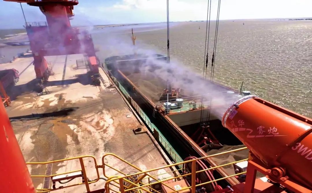 聽,嗚嘩~嗚嘩~嗚嘩...4臺60M霧炮交叉作業(yè),唱響綠色港口贊歌。