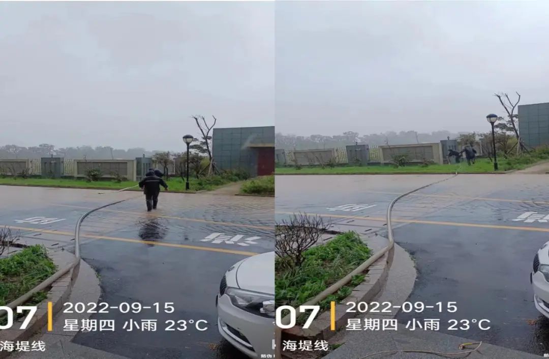 搶險隊伍密切巡查港區(qū)道路狀況,備齊鐵鍬、掃帚等防汛工具,搭配排污泵快速排水,及時清除交通安全隱患,保障港區(qū)正常出行。