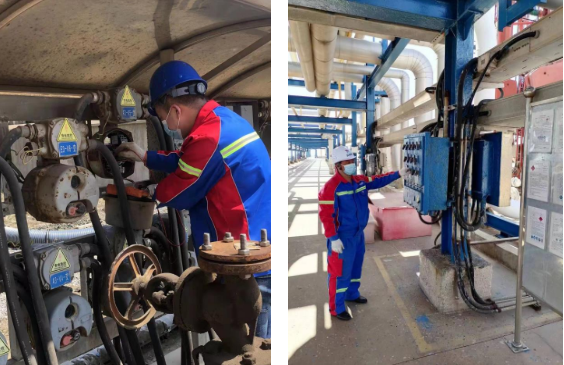 為切實做好各類事故防范,石化碼頭加強對重點區域、重點部位的檢查,逐一核查所有泊位的水管線、閥門的排水,并全部采取保溫措施,杜絕出現“跑、冒、滴、漏”現象,確保極寒天氣下工藝管線保持正常運行狀態。為確保在突發情況下輸油臂能夠及時收回、正常鎖定,石化碼頭各泊位工作人員對輸油臂內臂、外臂鎖定裝置和固定繩進行了專項檢查維護,并在潤滑保養項目中對鎖定裝置進行保養維護,保障輸油臂在冬季正常作業。同時,工作人員還對設備高處防風固定裝置進行檢查,全面做好對罩棚、施工擋板、腳手架以及爬梯等其他高空設施的加固工作。