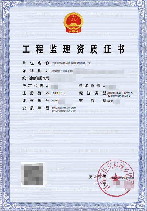 近日,鹽城港項(xiàng)目管理公司正式收到由江蘇省住房和城鄉(xiāng)建設(shè)廳頒發(fā)的“房屋建筑工程乙級(jí)和市政公用工程乙級(jí)”兩項(xiàng)工程監(jiān)理資質(zhì)證書,標(biāo)志著公司資質(zhì)申辦工作取得重大進(jìn)展,對(duì)提升公司品牌影響力和提高市場(chǎng)競(jìng)爭力具有十分重要的意義。