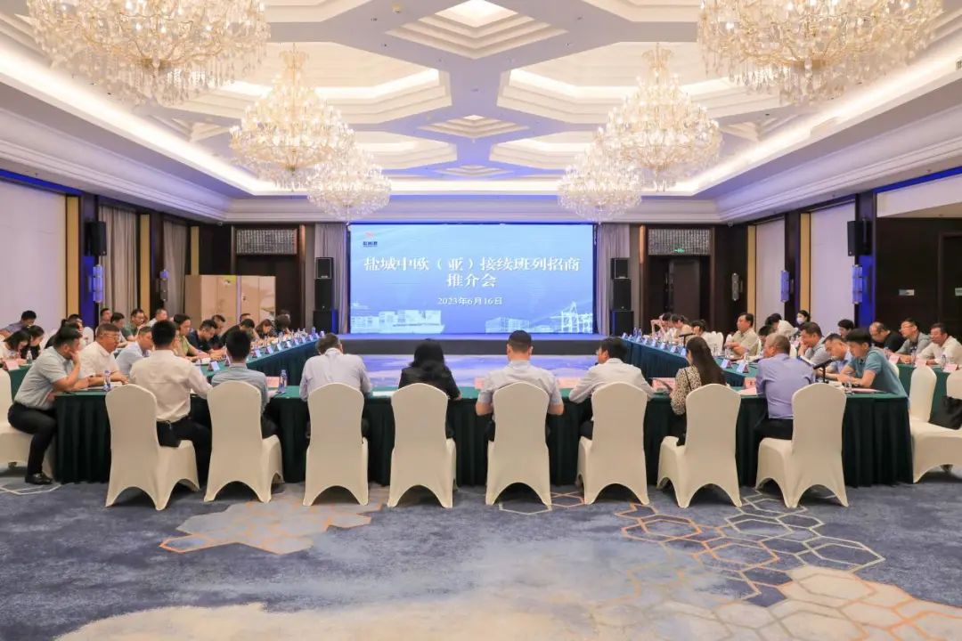 在鹽城港集團成立三周年之際,6月16日,中歐(亞)接續(xù)班列“鹽城號”正式開行。市委副書記、統(tǒng)戰(zhàn)部部長羊維達(dá)出席活動并宣布中歐(亞)接續(xù)班列“鹽城號”首發(fā)開通。市委常委、副市長吳本輝主持活動。省國鐵集團黨委副書記、總經(jīng)理丁建奇,省鐵路辦副主任馮兆祥出席并分別致辭。集團黨委書記、董事長周正雄參加活動并介紹相關(guān)情況,集團黨委副書記、董事、總經(jīng)理陸帥代表集團與7家企業(yè)簽訂中歐班列合作協(xié)議。