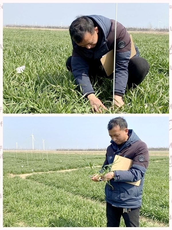 每年3月份,在小麥試驗田里總有一位年輕人在仔細考察著苗情,記載著調查數據,沒錯,他就是江蘇金色農業科技項目部的錢進同志。他經常在田間一站就是一整天,中午休息時間都不足一個小時,他一年在田間的科研時間甚至超過300天時間,而這都是常態。他需要時刻掌握三千多份小麥品系的苗情動態、品系特性以及氣候對麥情的影響等情況,所以他既要具備遺傳育種知識,同時又要有土肥和作物栽培管理、植物保護等綜合知識。他秉著踏實的工作態度,兢兢業業。