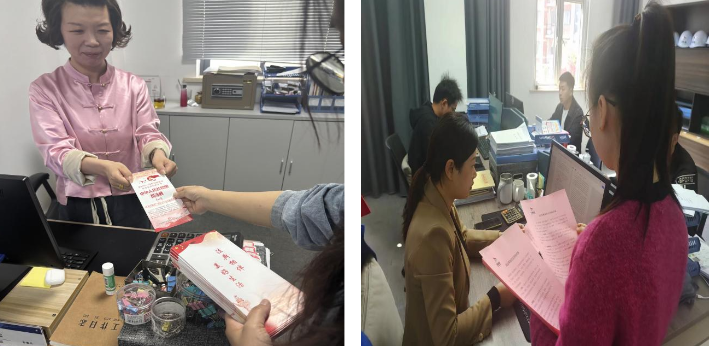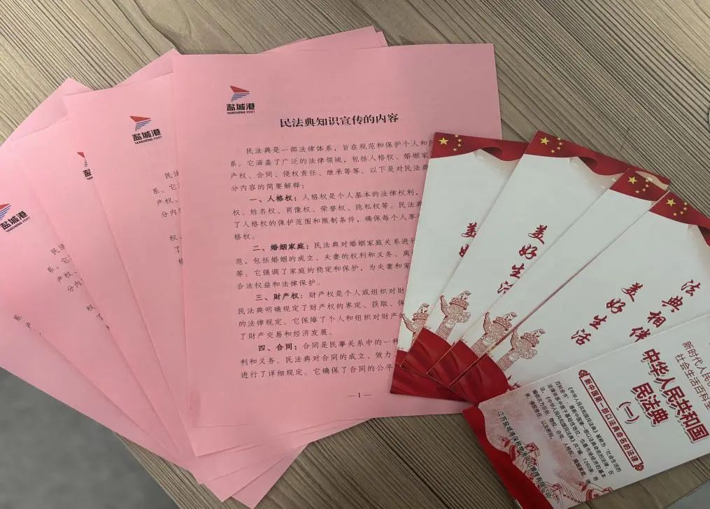 制作發(fā)放民法典知識內(nèi)容宣傳單及民法典普法宣傳冊,組織全體人員利用晨會時間加強學習,并在跨境電商園區(qū)向來往園區(qū)客人發(fā)放宣傳單,以此增強大家學法、懂法、用法意識,合力營造良好法治氛圍。