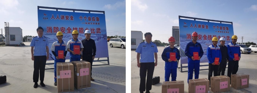 經過激烈的比拼,最終物流公司和港海會議中心代表隊憑借出色表現,獲得了本次競賽2個項目的第一名,競賽還產生了多支優秀的隊伍??h消防大隊、臨港派出所作為本次活動的裁判為取得名次的隊伍進行了頒獎,同時鼓勵大家要不斷提升義務消防隊伍的訓練水平和滅火救援戰斗力,充分發揮消防救援前置力量作用。