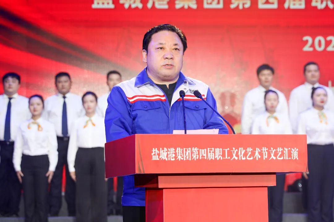 演出在鹽城港集團宣傳片中拉開帷幕。集團黨委書記、董事長周正雄在致辭中表示,這四年的歷程,是一部自強不息、艱苦卓絕的創業史,是一部勠力同心、催人奮進的發展史,是一部不負韶華、逐夢蔚藍的奮斗史。今天,我們即將邁入第五個年頭,機遇與挑戰并存,希望與困難同在,全體鹽城港人要始終堅持“六航引領·融合賦能”的核心理念,自覺弘揚“強港十大文化”,相互學習、相互幫助、互相關心、相互促進,真正以“十年磨一劍”的定力和韌勁投入到一體化融合高質量發展事業中,合力打造綠色、生態、智慧、平安、美麗的“五新示范港”,為奮力譜寫中國式現代化鹽城新篇章作出新的更大的貢獻。