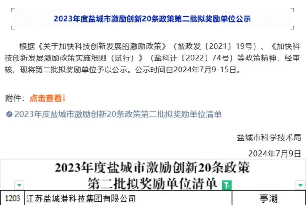 圍繞高新技術產(chǎn)品認定要求,高水準、嚴論證,不斷提升產(chǎn)品技術水平,以“實用實效實踐”為原則,創(chuàng)新創(chuàng)優(yōu)。同時,深刻把握國家科技政策導向,用足用活用好高企等優(yōu)惠政策福利,成功獲批高新技術產(chǎn)品認定,入選2023年度鹽城市激勵創(chuàng)新20條政策第二批擬獎勵單位名單,并完成市工程技術研究中心、省質量信用A級企業(yè)申報,標志著鹽城港集團在科技創(chuàng)新和產(chǎn)業(yè)發(fā)展方面登上新臺階。