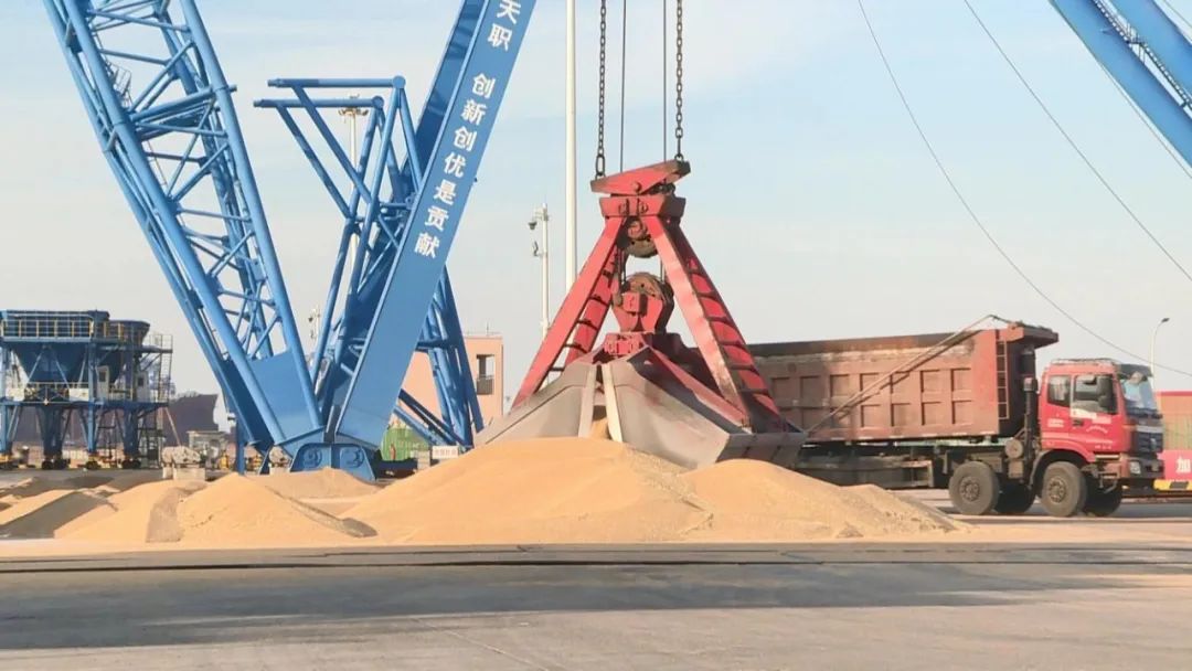 在響水港區6號泊位,門機正以每小時300噸的速度進行裝船作業,巨型抓斗將金黃的小麥如瀑布般傾瀉入艙。通過“港口直裝”模式,糧食運輸成本較傳統陸運降低20%,時效提升50%。數據顯示,響水港務公司本年度糧食吞吐量已達去年同期的2倍。