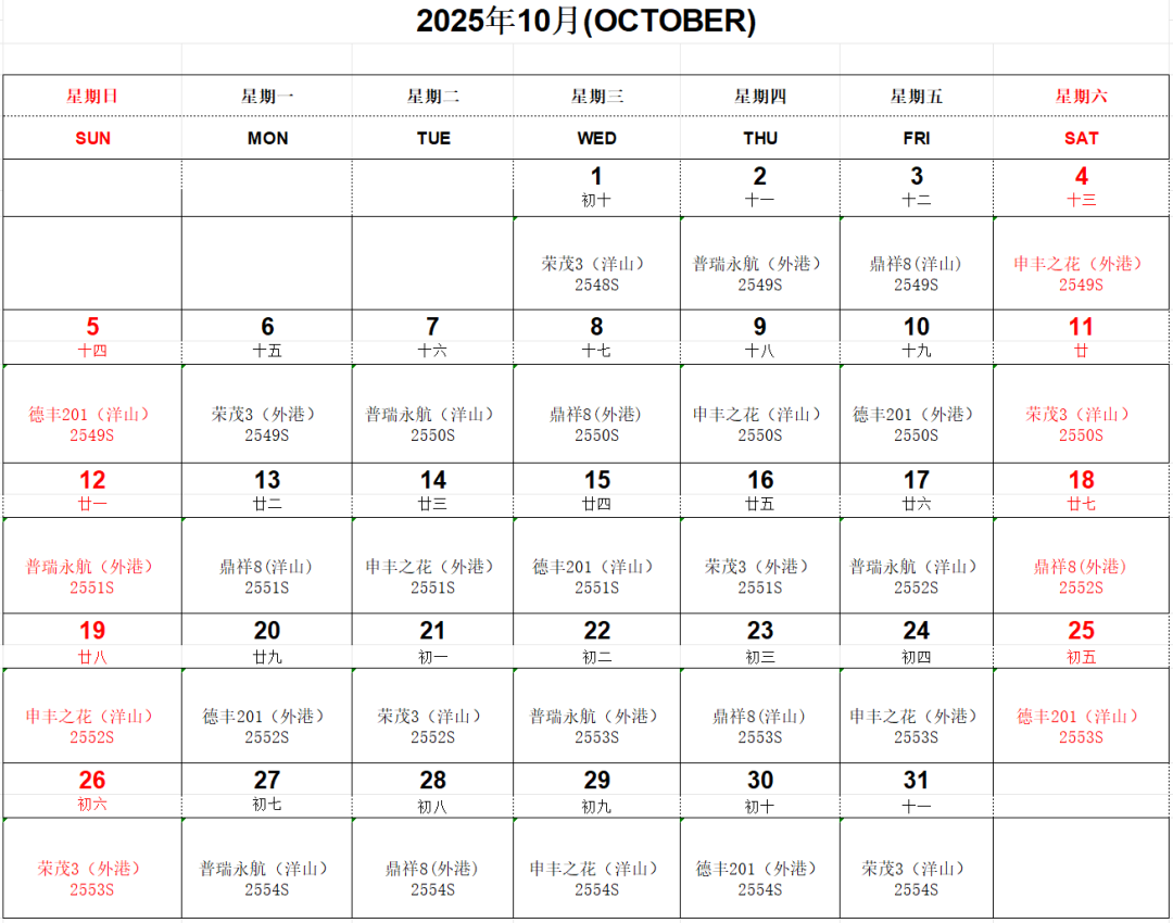 “滬鹽專(zhuān)線”10月船期表已經(jīng)新鮮出爐!