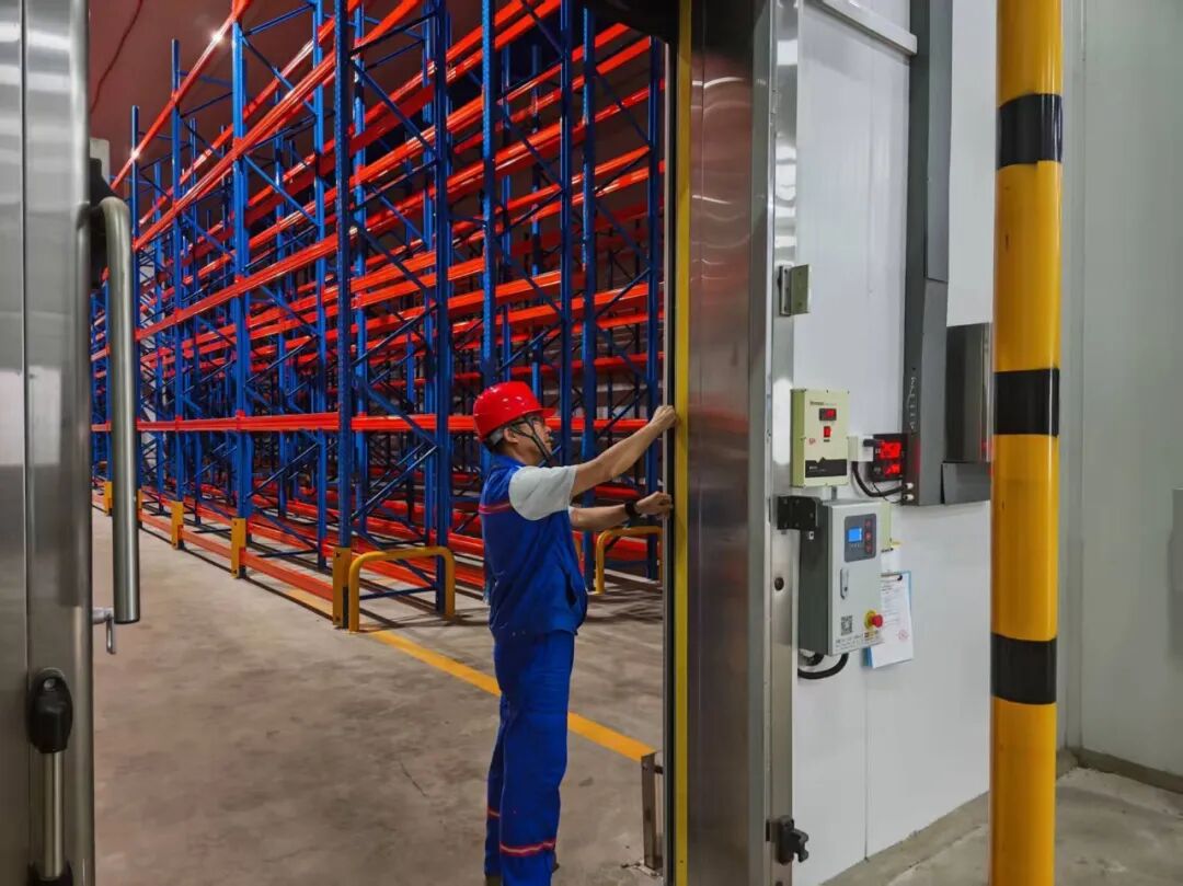 為減少冷量流失、降低設備運行壓力,港匯保稅從“規(guī)范管理+物理防護”雙管齊下。優(yōu)化開門管理:明確冷庫門使用規(guī)范并張貼展板上墻,同步優(yōu)化作業(yè)流程,單次開門作業(yè)不超過5分鐘、非必要不頻繁開關(guān)門,減少冷量外泄;強化保溫修補:定期檢查庫體保溫層,對發(fā)現(xiàn)的裂縫、孔洞等破損,采用高性能保溫材料及時修補,從源頭減輕制冷設備負荷,既延長設備使用壽命,又進一步減少能耗損耗。