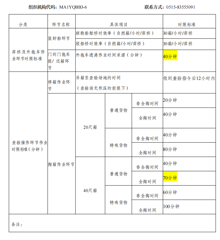 江蘇鹽城港上港國(guó)際港務(wù)有限公司作業(yè)時(shí)限標(biāo)準(zhǔn)