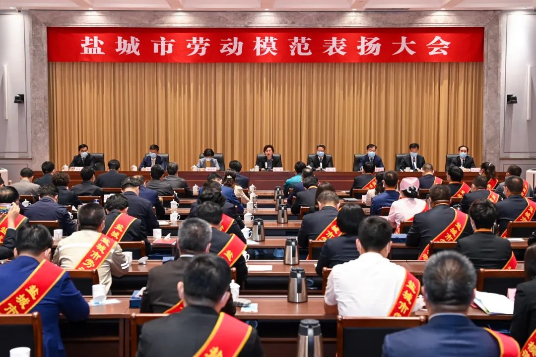 下午3時,大會開始,全體起立,奏唱國歌。會上宣讀《中共鹽城市委鹽城市人民政府關于表揚鹽城市勞動模范的決定》,授予300名同志“鹽城市勞動模范”稱號。在喜慶的氣氛中,身披紅色綬帶的市勞動模范代表登上主席臺,市領導向他們頒發榮譽證書和獎章。鹽城郵政公司快遞員陳國勇代表市勞動模范宣讀倡議書,號召全市廣大勞動者勤奮勞動,扎實工作,銳意進取,勇于創造,以昂揚向上的精神狀態和“比學趕超”的工作干勁,再創新業績、建功新時代,以實際行動迎接黨的二十大勝利召開。