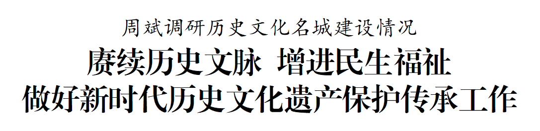 周斌在調(diào)研時強調(diào),歷史是城市的記憶,文化是城市的靈魂。各地各部門要堅定文化自信,堅持守正創(chuàng)新,自覺扛起歷史文化遺產(chǎn)保護(hù)傳承的政治責(zé)任,以繡花功夫守護(hù)歷史文化遺產(chǎn)、延續(xù)鹽城文脈,開創(chuàng)新時代歷史文化遺產(chǎn)保護(hù)傳承工作新局面。要正確處理好傳統(tǒng)與現(xiàn)代、保護(hù)與發(fā)展的辯證關(guān)系,充分挖掘利用歷史文化遺產(chǎn)的多重價值,以改革創(chuàng)新精神推動歷史文化遺產(chǎn)創(chuàng)造性轉(zhuǎn)化、創(chuàng)新性發(fā)展。