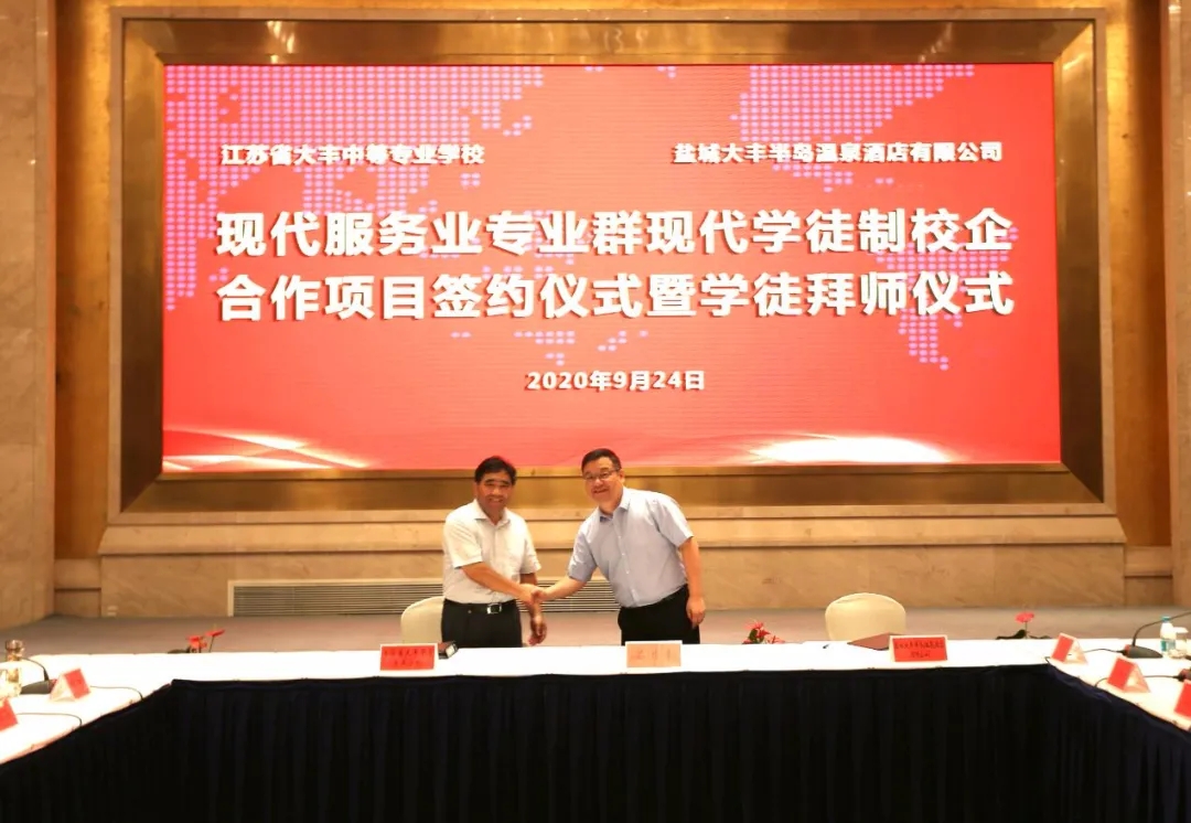 9月24日,大豐港集團與大豐中專舉行現(xiàn)代服務業(yè)專業(yè)群現(xiàn)代學徒制校企合作簽約儀式,來自大豐港集團和大豐中專的有關領導、教師代表、學生代表和家長代表共80余人共同見證了簽約儀式。