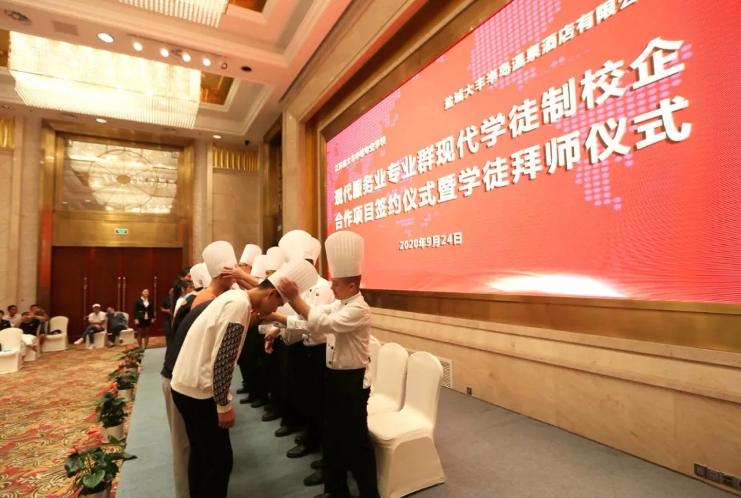 據(jù)悉,大豐中等專業(yè)學校和大豐港集團旗下半島溫泉酒店簽訂協(xié)議,雙方將共同探索建立校企“聯(lián)合招生、聯(lián)合培養(yǎng)、定向就業(yè)”的人才培養(yǎng)長效機制,為創(chuàng)新人才培養(yǎng)方式提供了一個嶄新平臺。通過合作,學校和企業(yè)進行優(yōu)勢互補,實現(xiàn)資源共享。活動中,學校、酒店、家長、學生四方代表簽訂了現(xiàn)代學徒制工學交替跟崗實習協(xié)議,并舉行首批學徒制拜師儀式,23名學生順利拜師跟崗。